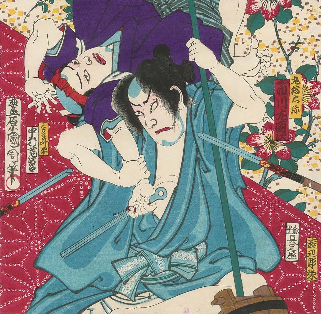 衣装の紫について少し。歌舞伎の”身体が健康な”はずの助六がなぜか紫色の鉢巻をわざわざしていますが、無法で非常識で義侠心にあつい傾奇者の、人並みではないという意味での”精神が不健康”な感じを紫色の鉢巻で表現していると思います。八百屋お七さんの紫色を見て、高貴な色であるはずの紫というより、傾奇者のハチマキの紫に共通する「病質の表現色」という印象を受けました、勝手に。月岡芳年に聞いてみたい。