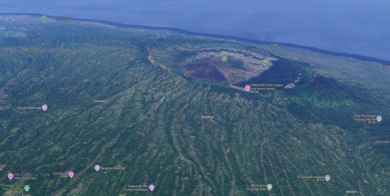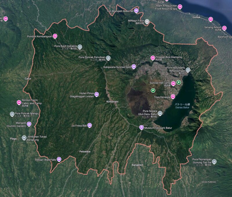 高原というと平たいイメージだが、キンタマーニ高原は、バトゥール山の山体を指す。阿蘇山のような外輪山を形成。阿蘇の山体も阿蘇高原、こういう地形を高原というのだろう。キンタマーニは、サンスクリット由来の地名である。その昔インドから来た文化が東南アジア、ミャンマーラオスカンボジアのみならず、インドネシア、マレーシアにも広がっていた。インドネシアがイスラム化される過程で、先住のサンスクリット語系ヒンドゥー教の王族や郎党が他の島からバリ島に逃げて集まった。インドネシアの中で、バリ島だけはバリ・ヒンドゥー教が信仰されているが、正確には純粋なヒンドゥー教ではなく、バリ島の土着信仰と仏教とヒンドゥー教が習合したもの。